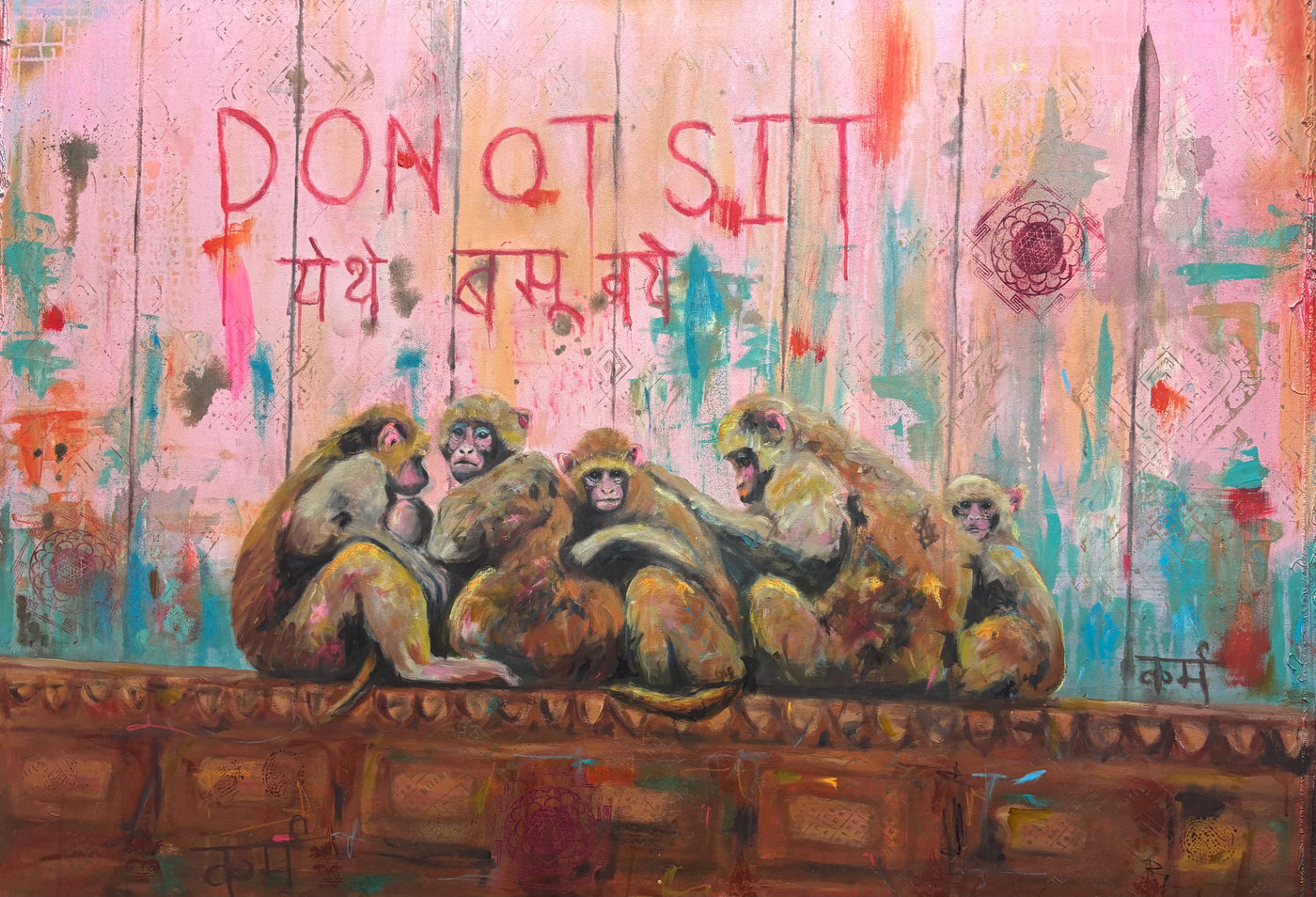 Her paintings of Indian street cows are unmistakably recognisable; these large canvases are embellished with layers of gold print giving them a sense of opulence and unique appeal. Some of her creations are also available as high quality giclee prints which are released as limited editions.