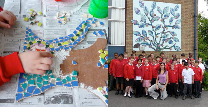 Mosaic and mural projects in schools and public spaces produce effective, long lasting and hard wearing installations. Designs are highly creative, and constructing them together with the children gives them a sense of pride and achievement in their works of art.